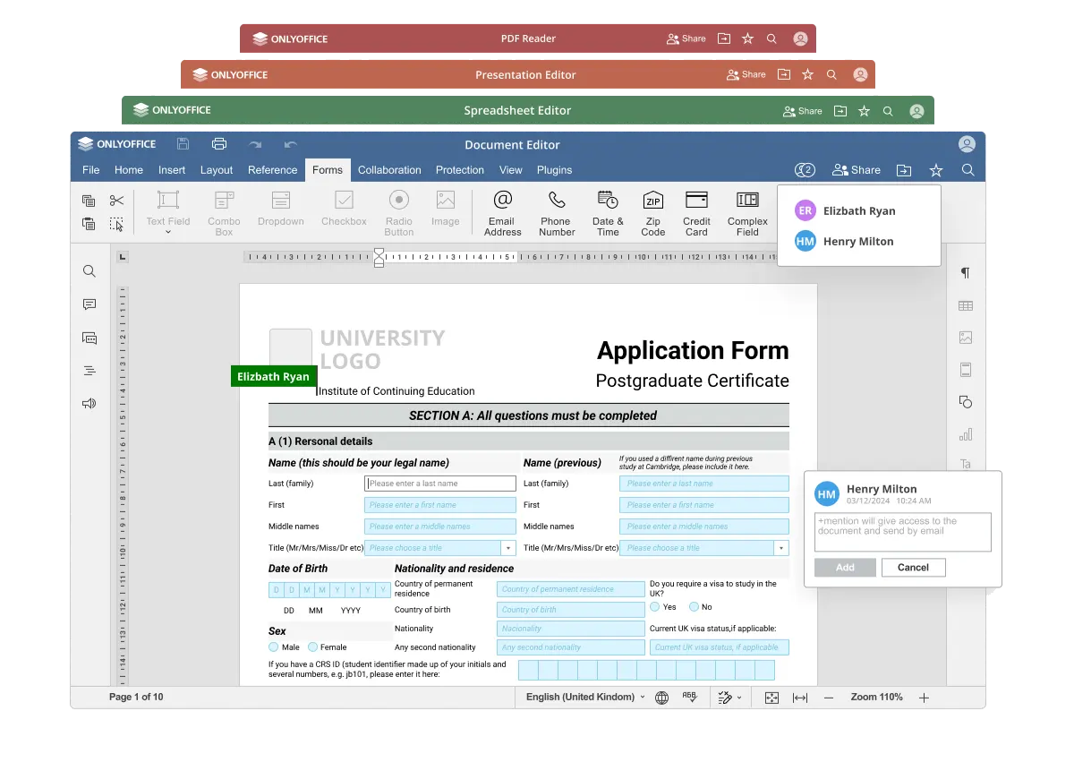 • 在线创建、查看、编辑并协作处理文档Word、工作表Excel、幻灯片PowerPoint